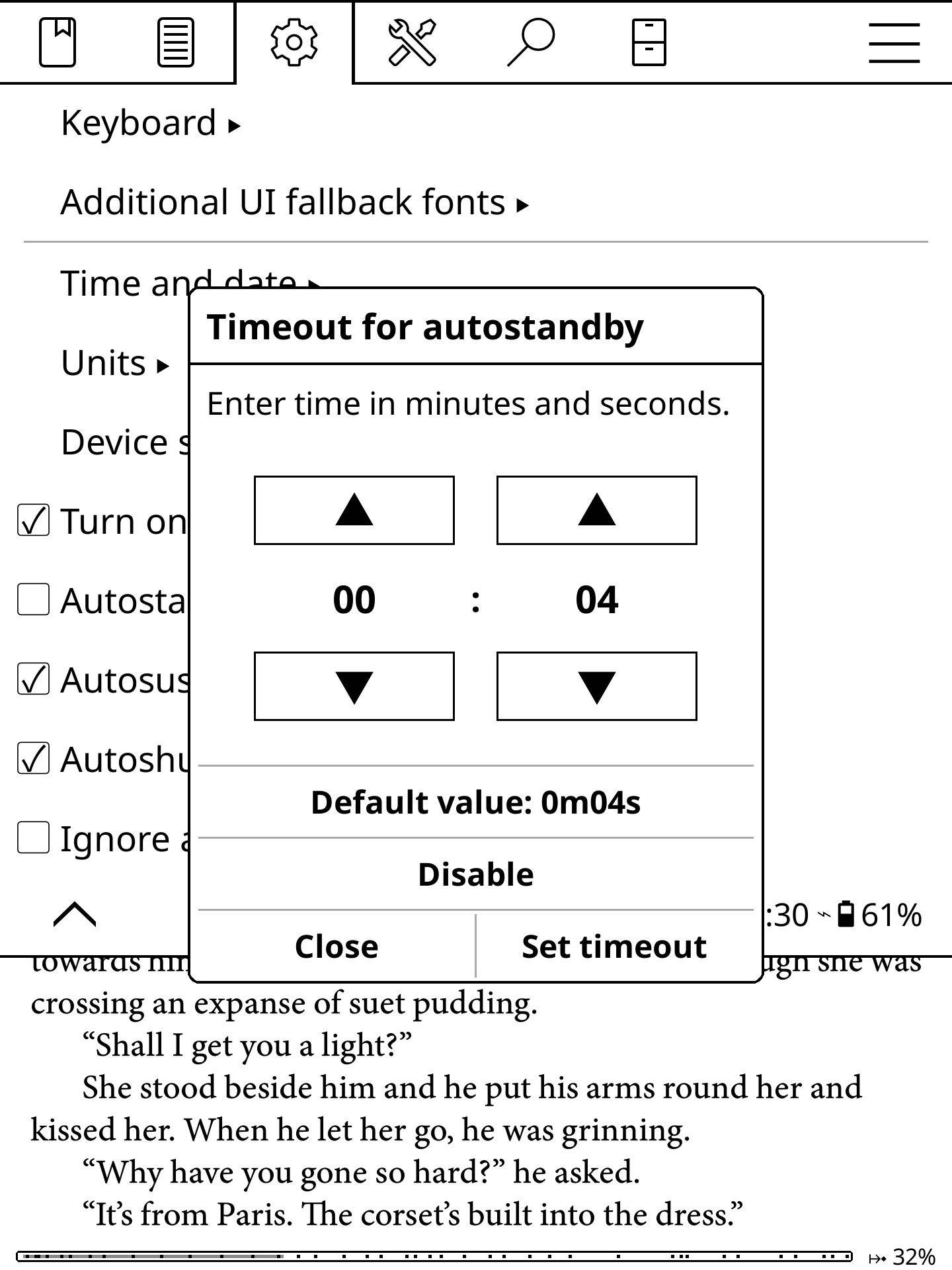 FWIW, enabling auto-standby should yield similar to better battery life than in Nickel (with the usual caveats on i.MX devices, where it'll tank page turn latency to almost as bad as Nickel levels