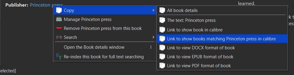 I have to ask though. Any idea why even though we pretty much replicated the tags and the links (except they are in a list), Calibre gives us the option to copy the link text in case of the default tags but not in the generated custom column? |