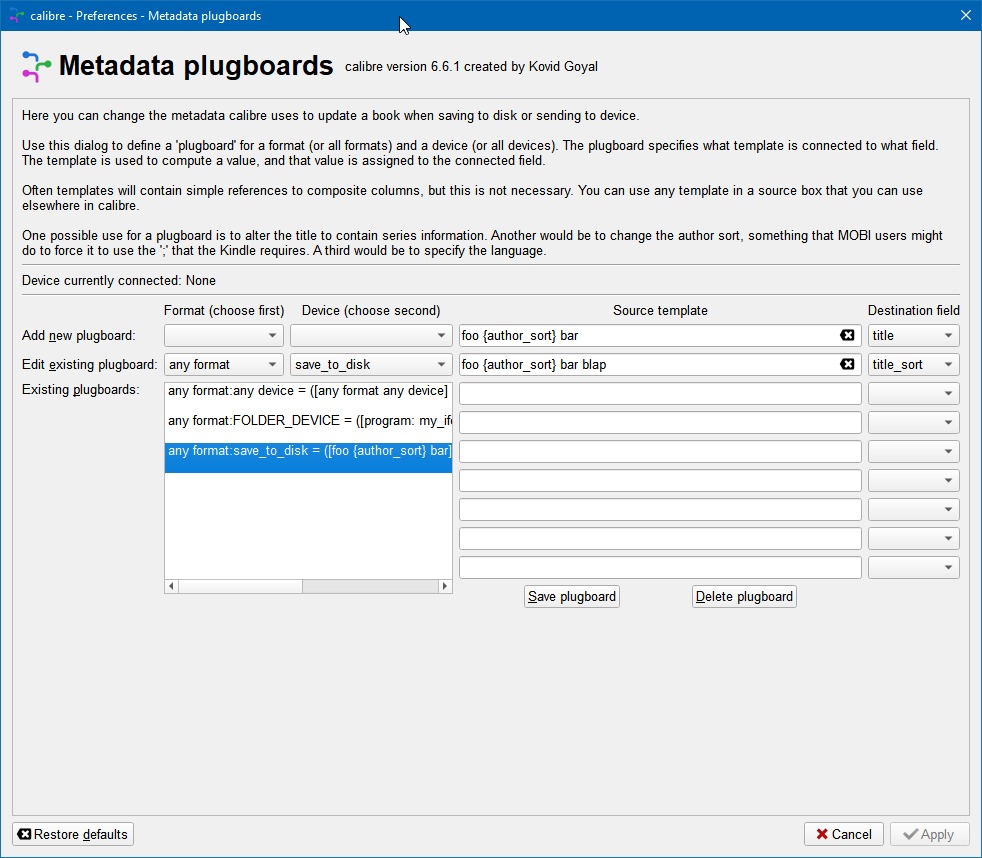 I think you are talking about a metadata plugboard. If so, please attach a screen capture of the plugboard screen with the kindle device selected. See the screen capture for an example of what we need. |