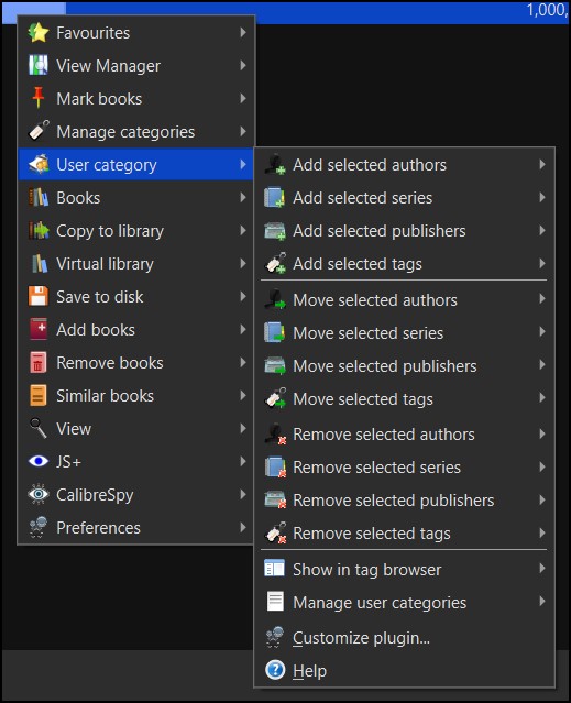 I don’t know whether or not to recommend creating a parent category such as Crime - chaley can opine on that. I suspect it means extra noise in the plugin menus. I don’t think hierarchical tags existed when I created this plugin aeons ago, or perhaps I never catered for them specifically. You might end up with noise in the plugin menus you never can remove if calibre didn’t let you delete the parent category in isolation, would have to test it (again chaley will know). |