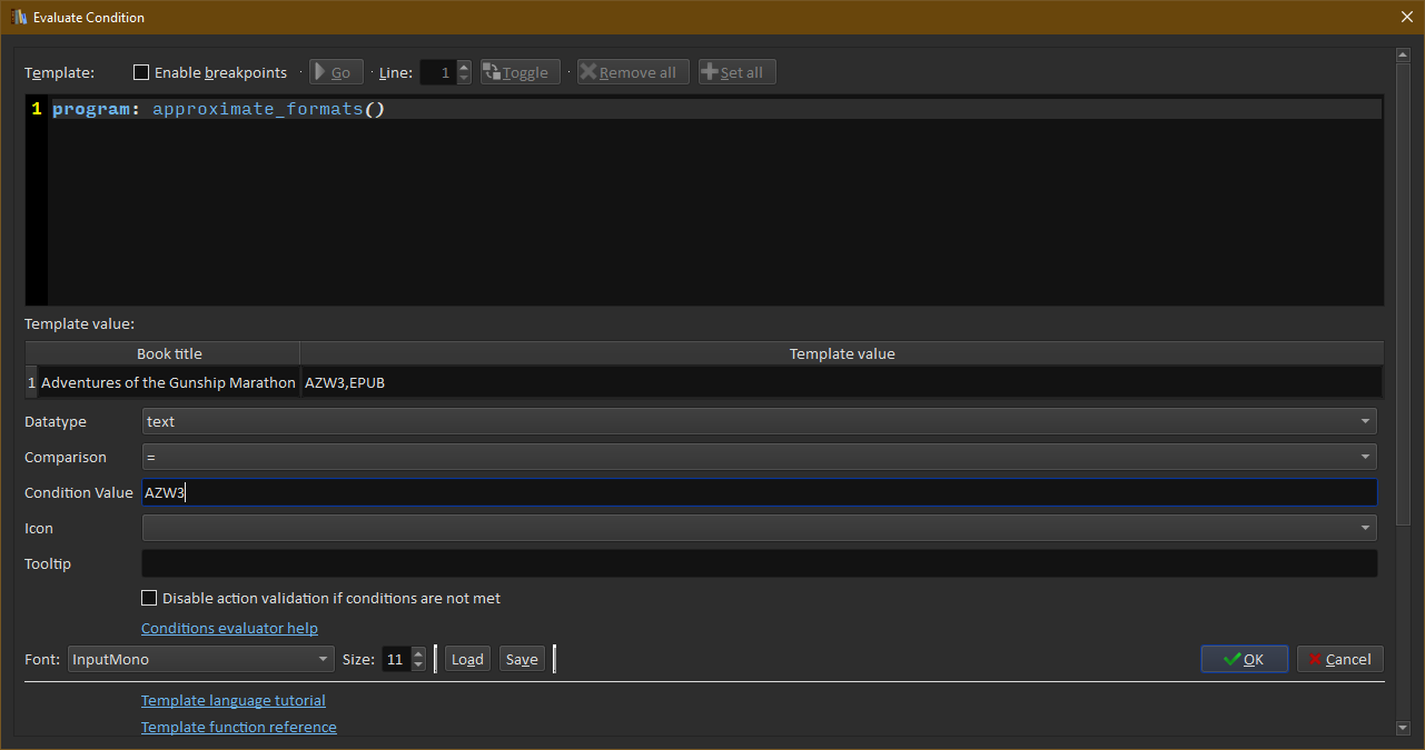 Question: I added an action to my 'send-to-device' chain to run 'convert individually' books to ePub if the only available format is AZW3. While setting conditional to use approximate_formats() seems to work, is it the best way?