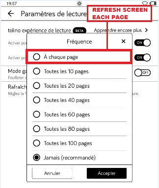 Yes, it is possible to install Koreader and choose to redraw the screen at every turn. But you don't need to install KOREADER for that, you can find page redraw every time you load in the settings : As for the Tolino Vision 6, I don't understand why the bluetooth is removed and masked. After minor and very simple adjustments, I managed to activate the bluetooth chip and connect external devices such as headphones and the like. It is also possible to install and listen to audiobooks after installing Audible. Same for TTS. Even Text-To-Speech worked perfectly. It's a real shame that Tolino vision 6 is so limited and stripped of various features in the default Tolino environment. At the same time, Vision 6 has so much potential. • After activating Bluetooth and connecting an external speaker, the Amazon Audible application works perfectly. Spoiler: