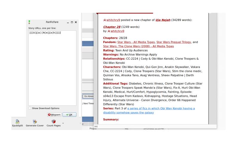 I don't think it's site specific (see attached photo). No, I get the same result from dragging a block, as from dragging just the link. I mainly try to drag-an-drop from Thunderbird into the dialog window, and get the previous screenshots result. I tried to drag from the chrome url bar, and the dialog window didn't recognize the url, nothing got dropped into it. Same with urls from the pages, nothing gets dropped into the dialog window. I tried both AO3 and ff.net with the same result. Yes, I'm using the official version. This problem first appeared when the first release of Calibre 6 came out, 5.44 worked without problems. I have a suspicion, this has something to do with Qt6 and not a specific story site. I'm using Hungarian. I switched the language to UK english to check, got the same result. |