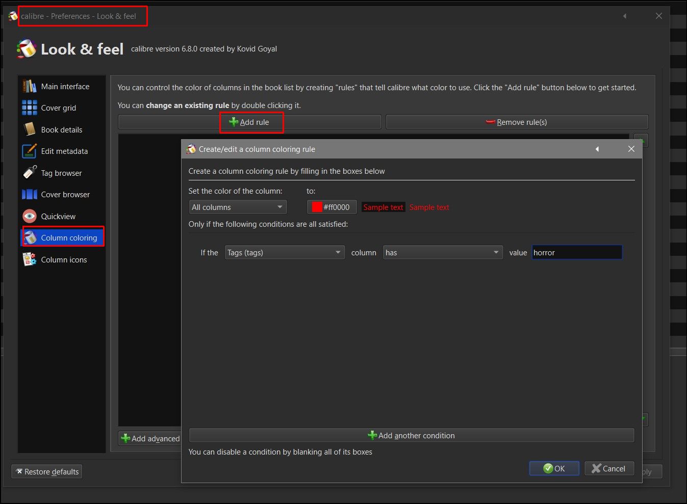 Is it possible to highlight the rows of books that have a certain tag with color?