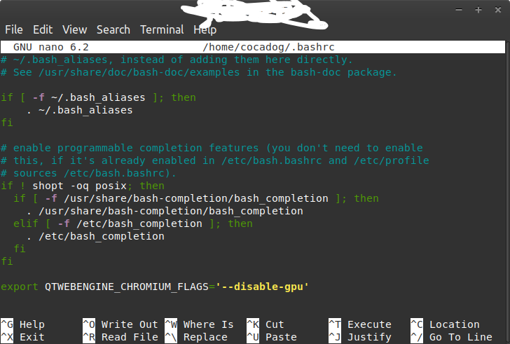 type in: sudo editor ~/.bashrc enter password go to the bottom of the file using the down arrow. type in: export QTWEBENGINE_CHROMIUM_FLAGS='--disable-gpu' save file using ctrl shift ^X type y return reboot. bernie |