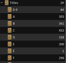 That said, if you really want to do this then create a "Column built from other columns" with the template {title}. Check the "Show in tag browser" box. Depending on how you think and how you use titles, you might want to change Preferences / Tweaks / Control formatting of title and series when used in templates (ID: save_template_title_series_sorting) to 'strictly_alphabetic'. |