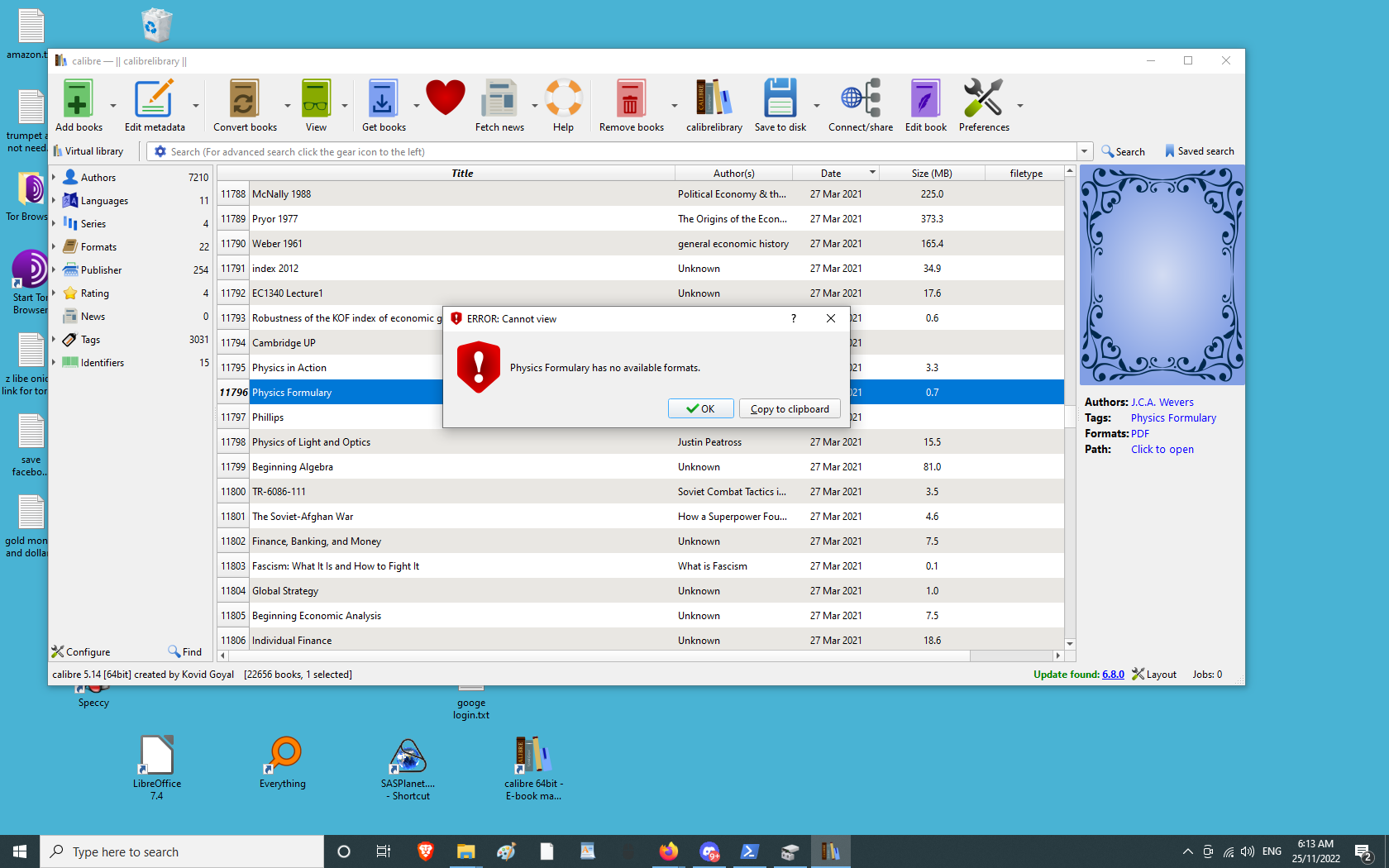 well the library is there alright. As I say many of the books are listed as, for instance, 'pdf' and they open okay. But many others are not listed as anything and when I try to open them I get that message.