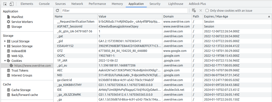 p.s. - Interesting that I have cookies being created by Google and Doubleclick on the Overdrive webpage - my web browser settings are to always block 3rd party cookies. Interesting, ... interesting indeed! Last edited by haertig; 12-06-2022 at 06:43 PM. Reason: Added p.s. |