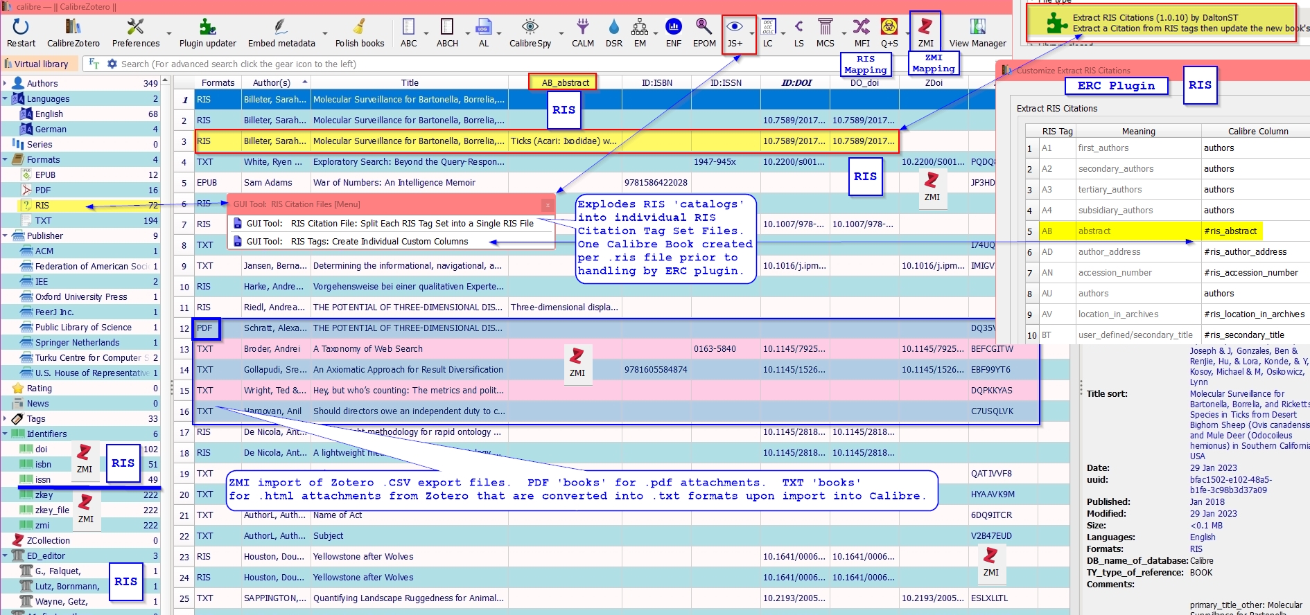 If you use Zotero, you should also be using Job Spy for at least the 2 GUI Tools for RIS Citation files, plus of course the "Extract RIS Citations" (ERC) file-type plugin and the Zotero Metadata Importer (ZMI) GUI plugin. See their threads for recent posts that are companions to this post. js: https://www.mobileread.com/forums/sh...5&postcount=23 erc: https://www.mobileread.com/forums/sh...9&postcount=17 DaltonST Last edited by DaltonST; 01-30-2023 at 01:29 PM. |