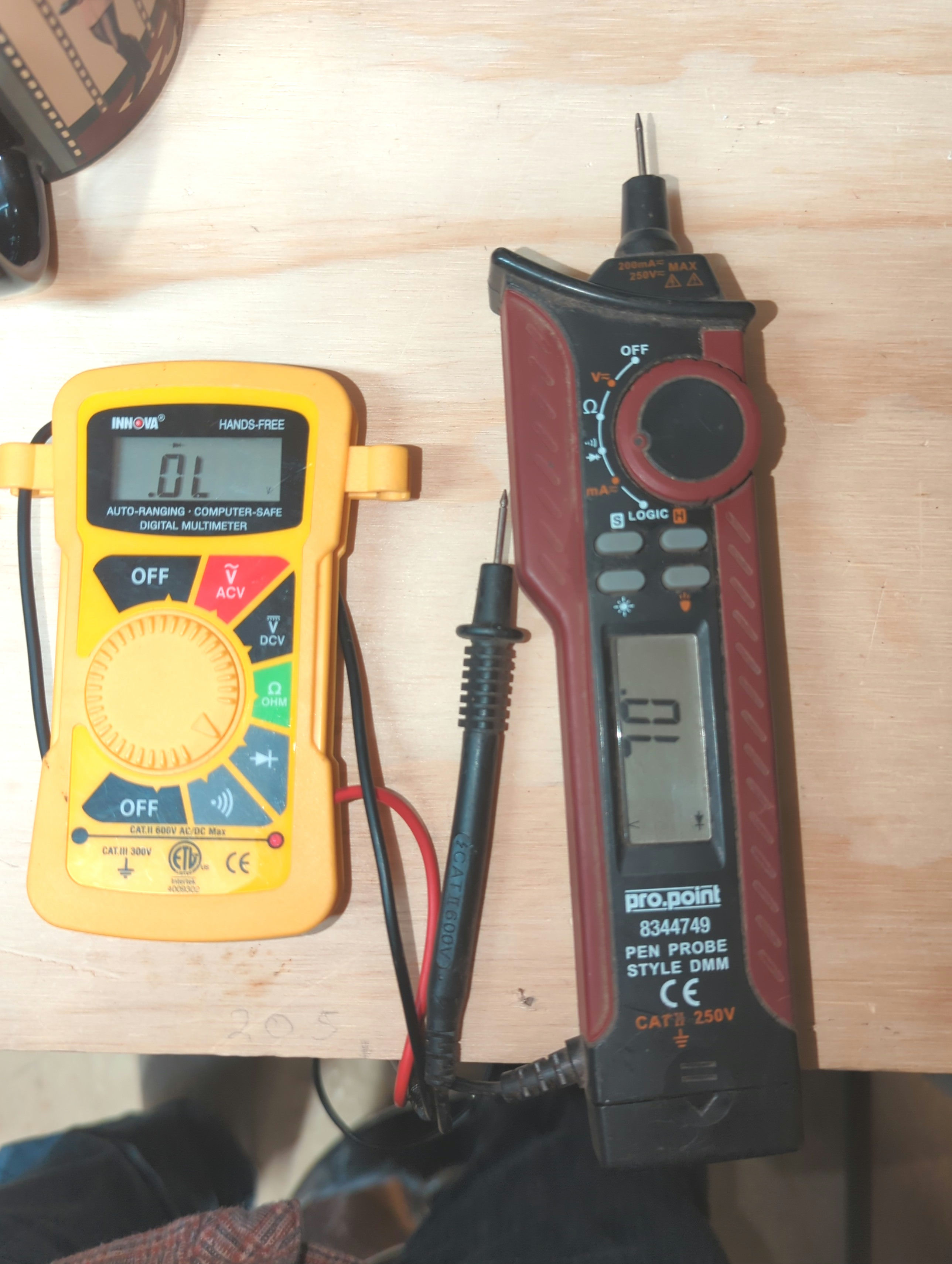 I've dug out two different volt meters, not sure which if either will work. Any thoughts on if either will do the needed task? |