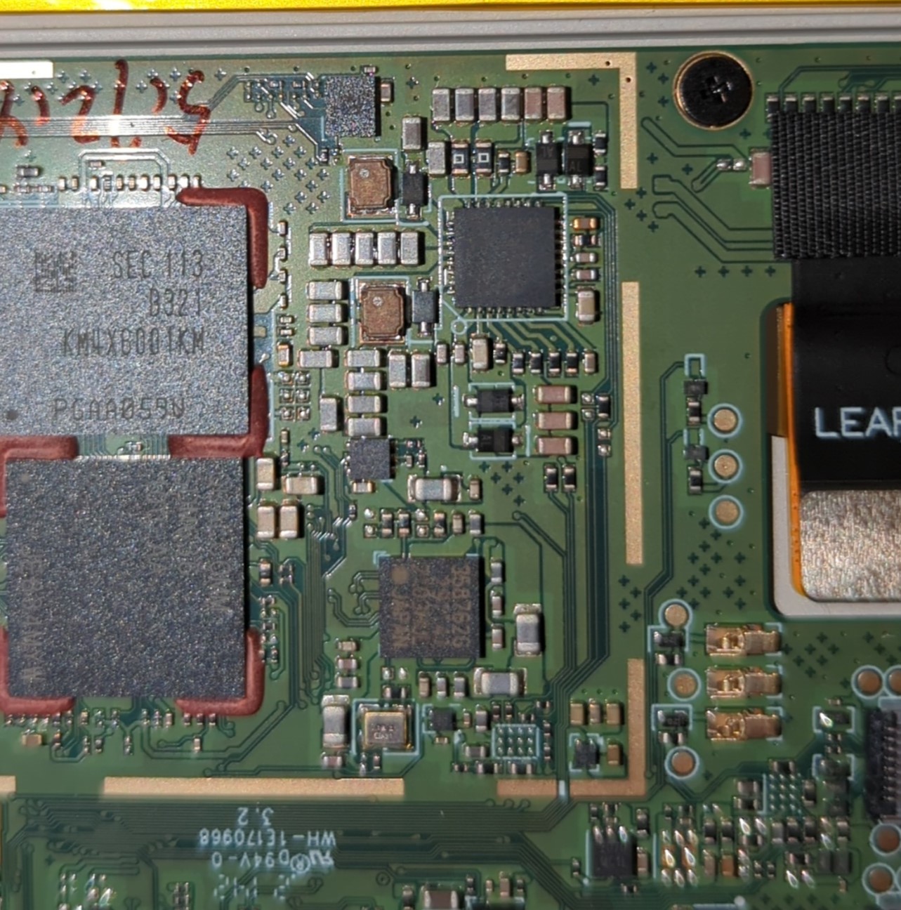 I can identify many of the test points, but I don't see anything unless it's close to the battery connector. This is a shot of my Poke3 (same SDM636) to show you how obvious they made it. The glass reed switch is my addition. The UART is on the (also added) white connector. You can try disconnecting the battery and reconnecting, see if anything changes. That's on a "mezzanine" connector. You can pull it with your fingernails on each side (knuckles against the board). Pull evenly on both sides. While the battery is disconnected, you might look under the Eink panel connector. Manufacturers try to be sneaky sometimes. It's a mezzanine connector too. If your device WAS working it would be easy to find the EDL points. Since it's the same SDM636 I know that it's GPIO57 and even have a program for detecting it. I think that you have to get a resistor or two. Got any neighbors? If you had a 1000 ohm and a 1.5V battery you could just test all the points. P.S. If you look under that Eink flex don't bend it too much. P.P.S. You're really, really sure that holding one of the buttons while resetting doesn't get you to fastboot? My Poke3 doesn't have any buttons. Last edited by Renate; 01-28-2023 at 08:58 PM. |