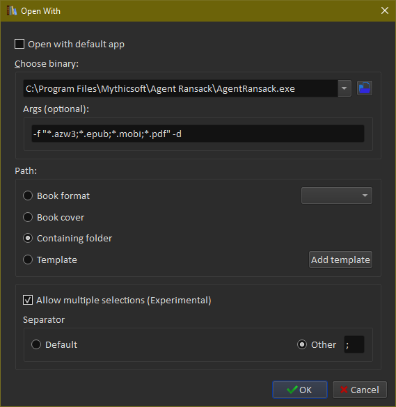 When I want to do additional searching, I use 'select all matched books' and then action chains 'open with' action to pass the folder paths to Agent Ransack (alas, epub search is a paid feature).