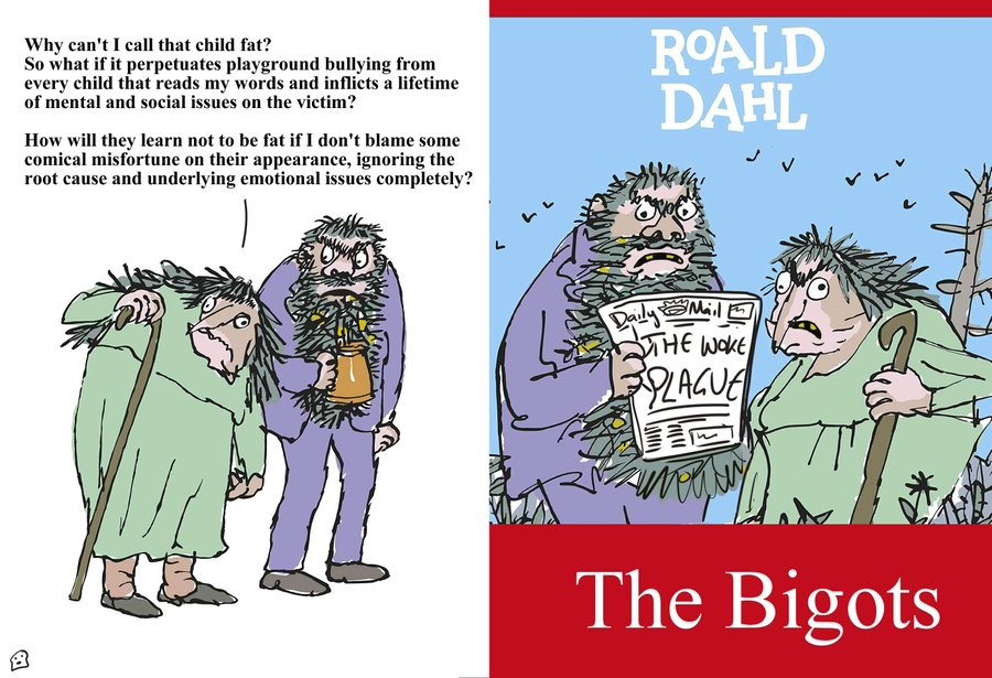 I think it's insane to change the books. I have only a passing familiarity with Dahl's children's books, but the examples I saw (in a National Review article, no paywall) are completely idiotic. This is the kind of thing that undermines legitimate efforts at inclusiveness and understanding, because it makes sensitivity seem ridiculous.