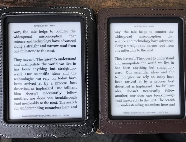 One thing I didn’t realise was that Kobo must of changed supply of the screen during the later manufactures, because there is a noticeable difference in screen contrast (blacker rather than dark grey e-ink) between these 2 units. The older Kobo Mini unit N705292007390 has the less contrasting, almost fuzzier screen. The newer Kobo Mini unit N705313010992 has the better contrast, much sharper screen. You can see the difference in the photos. Has anyone else with a Kobo Mini (still) noticed this? |