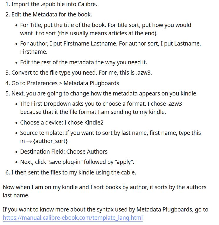 I am not sure what I am doing wrong but whatever I try I still end up with my books being sorted by first name. I tried the method you illustrated above but it didn't work for me (I probably did something wrong somewhere).