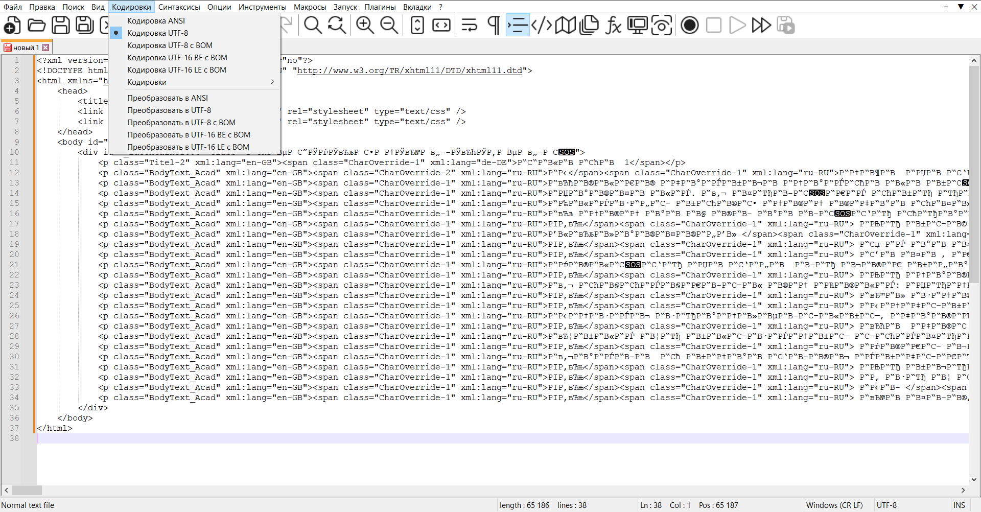 • Open the file with it (Notepad++ should detect the encoding as Cyrillic > Macintosh or Cyrillic > Win-1251. If it doesn't, select Win-1251.)
