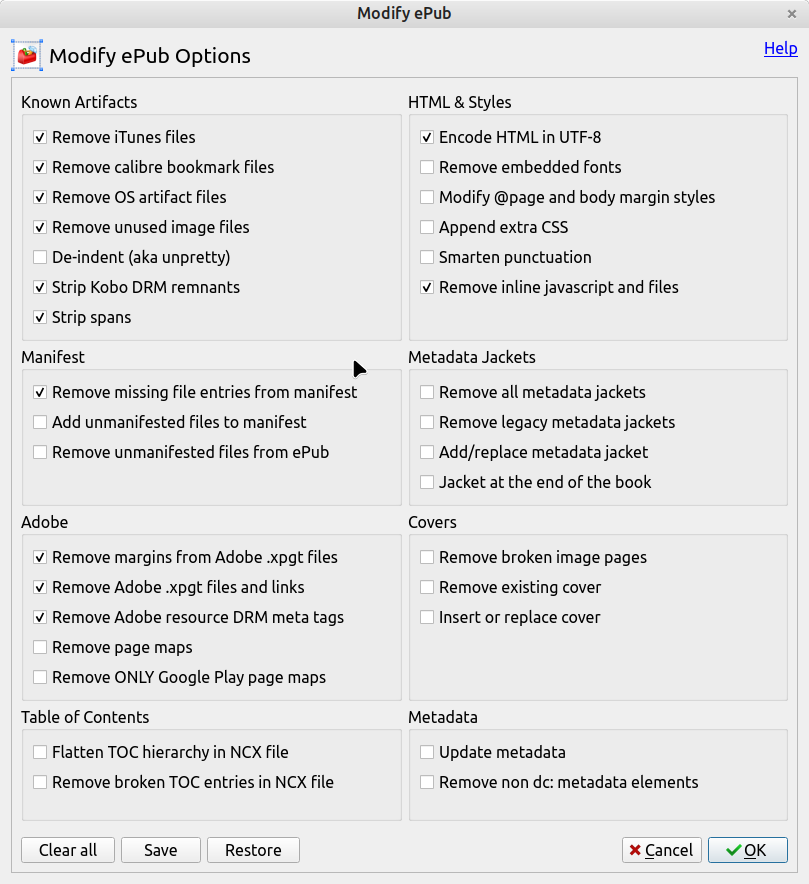 For my first run of Modify epub I use these setting: This is the log file Code: