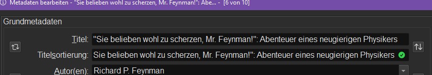 Two leading quotes makes the Title Sort correct, but the metadata shows 2 leading quotes