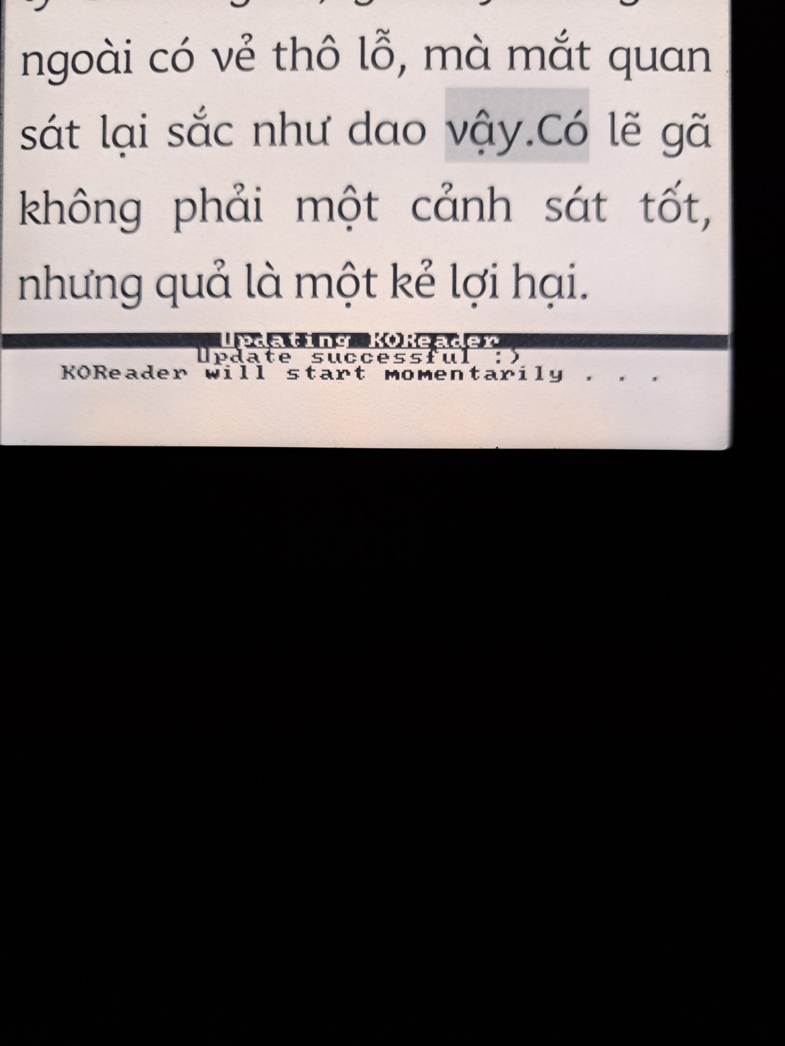 After updated my Clara through "Update option" in Menu of Koreader (Koreader version 2022 maybe, don't remember Nickel fw), my Clara doesn't work any more and shows the death screen below. What could i do now, please show me the way. Thank you for your help. |