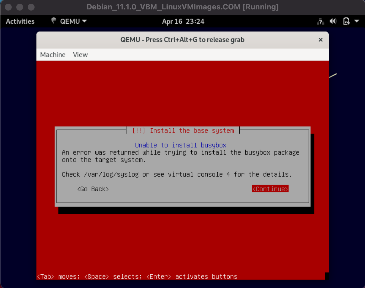 The first mirror didn't work out too well. Nearly done with the installation, but it failed to install busybox.