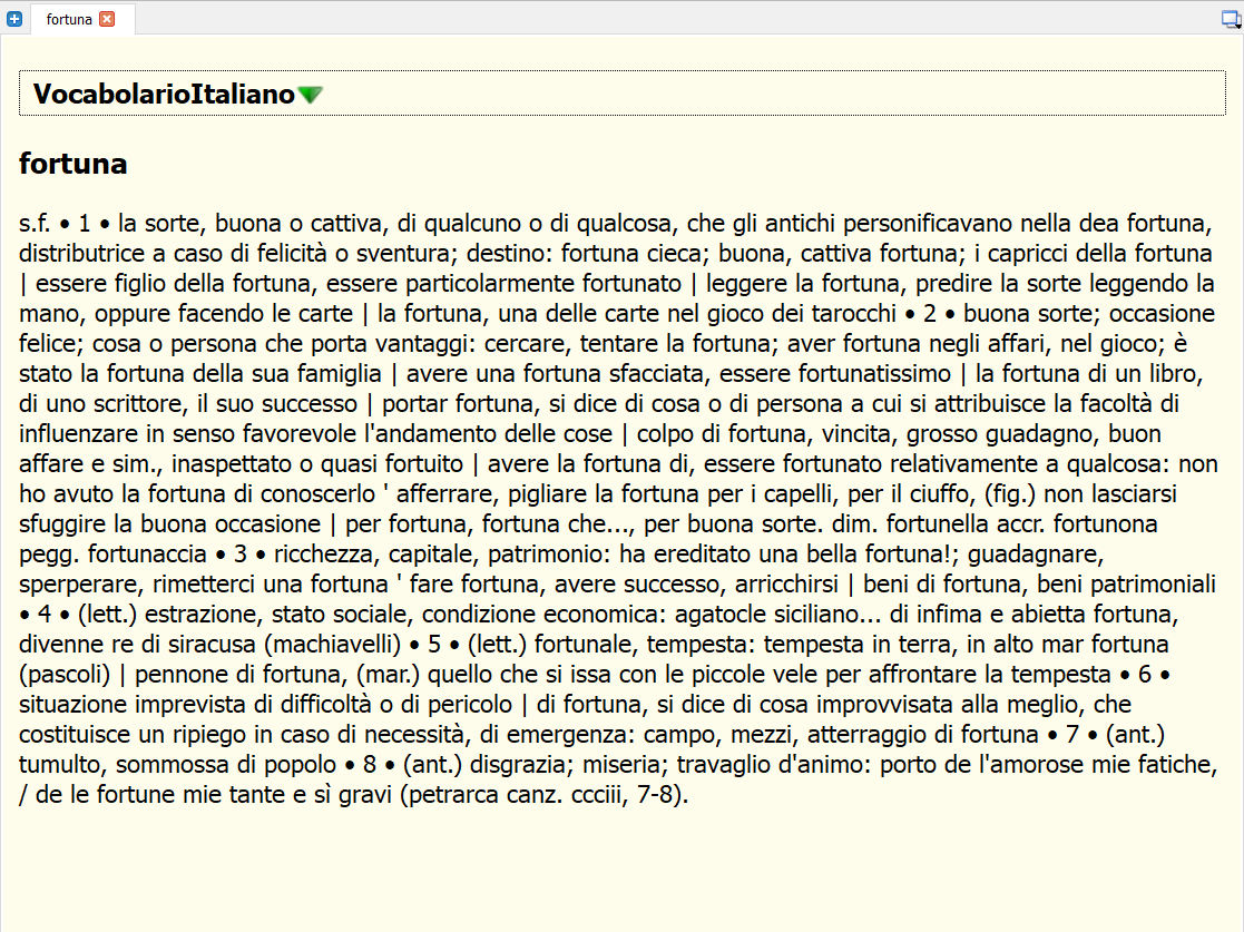 Install Italian "Zingarelli" dictionary.