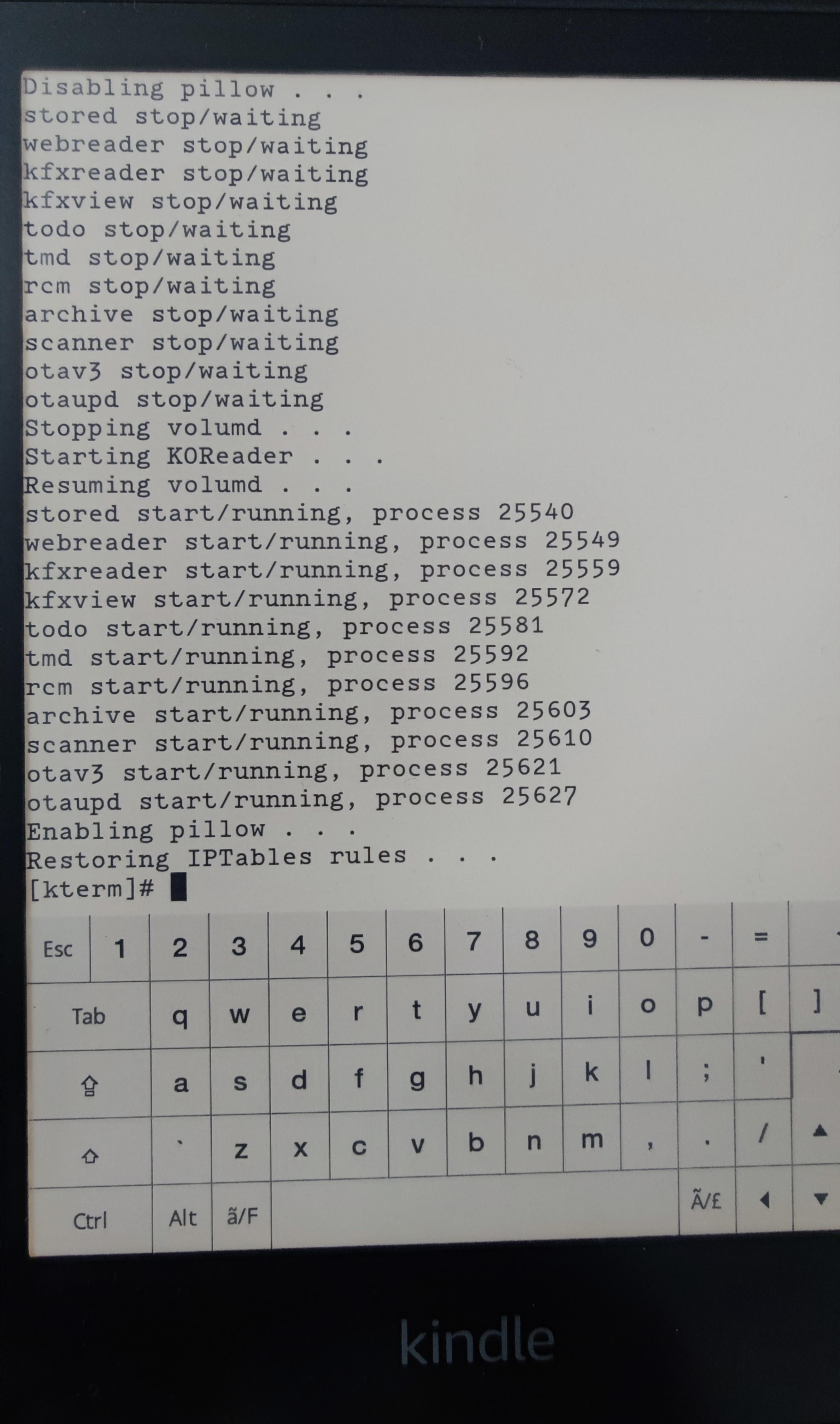 I learn a lot from all of you thank you a lot I have a problem with my jailbreaken pw5 after i changed the screen of it after broken i instal clean firmware 5.14.2 and jailbreak it and everything fine kual work and all extenion except koreader just show starting koreader and then crash to home page i tried different verion of koreader and. Clean install and nothing i also downgrade the firmware to 5.14.1.1 and not work also.