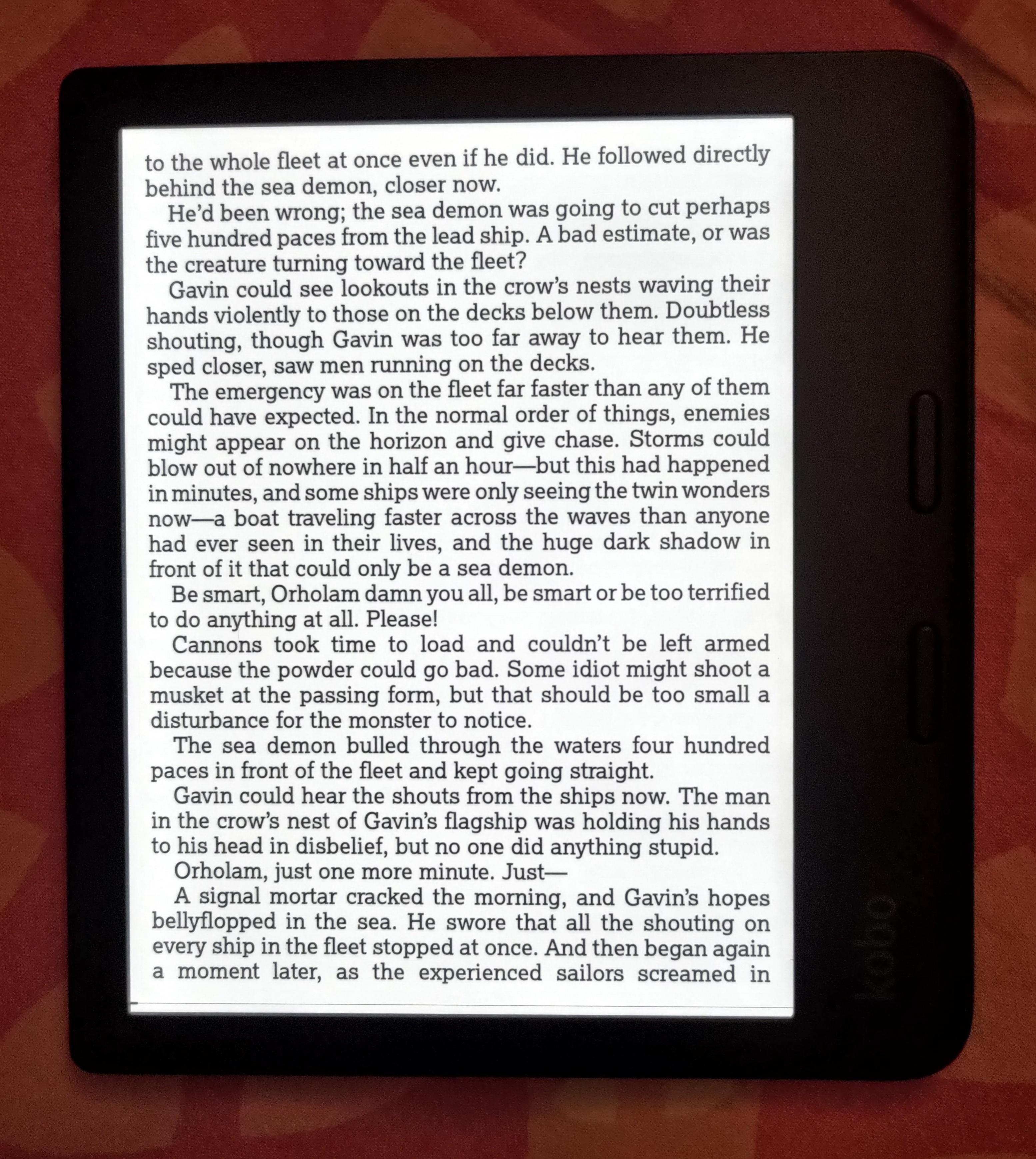 The Libra 2's still iffy for me, and reading in landscape mode doesn't sound particularly pleasant. I'd love if I had a way to demo the Libra 2 and see what it feels like, but there's basically no way to do so in my country. The screen size has more so been a problem of me needing to make text size substantially bigger to read at night without my glasses. One of my biggest issues with the Kindle Basic (aside from the software and formatting stuff and lack of warm light) and been that there wasn't enough text on screen. It's still usable, but not great. I've recently learned you can adjust the margins on a Kobo to get way closer to the edge of the screen than on a Kindle. Does anyone know if that's actually the case and practical for normal reading application? If it is, I'd be able to make the text just big enough for what I prefer and I'd probably get the Clara 2E in a heartbreat.  |
