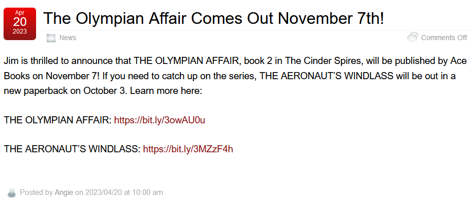 ETA: the interview was weird. It was mostly paraphrased. A little bit of what Jim Butcher said was quoted, unfortunately not all of it. Aaron Deese had this plunder blunder in there: Quote: