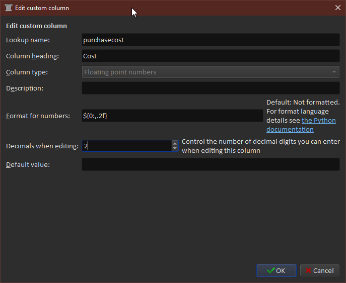 Custom column for price paid for book?