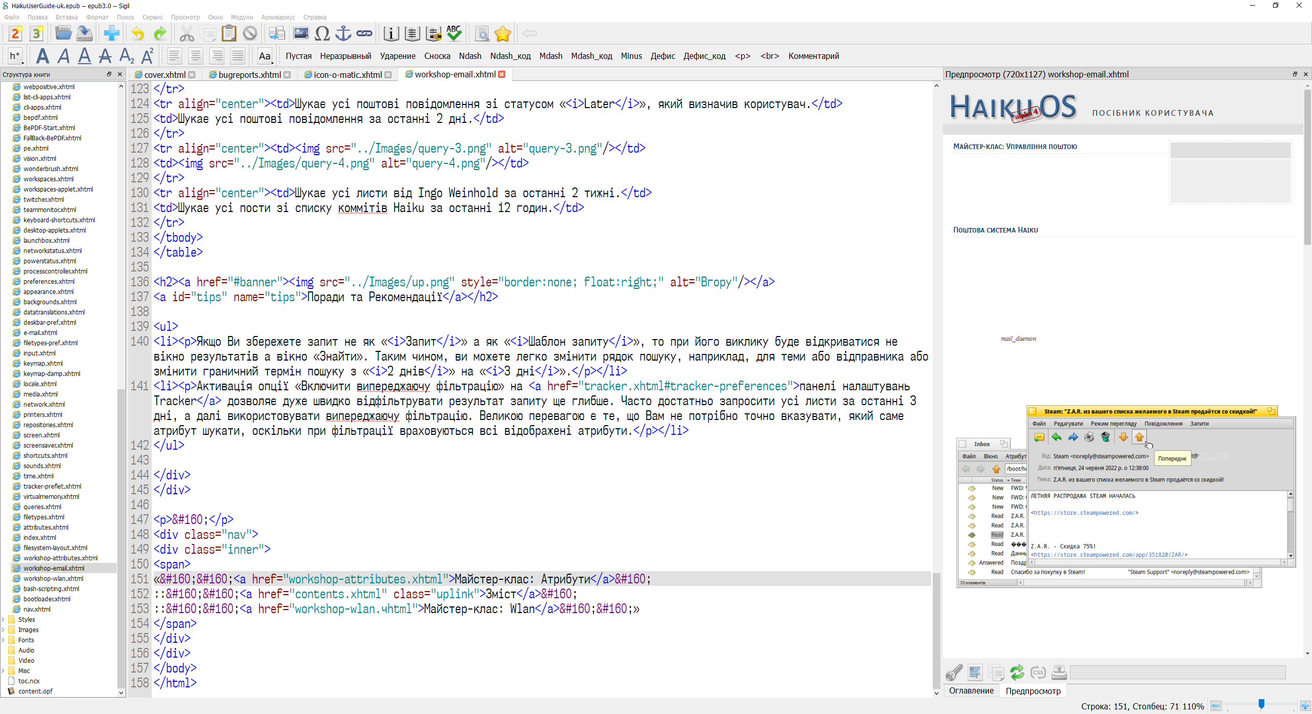 Such things began to happen after installing version 2.0.0 and then 2.0.1 Hangups are observed quite rarely and with completely different actions in the program. Especially often this manifests itself in the absence of a cover image when opening a file in an editor. In other circumstances, some text and image artifacts remain in the preview window. To get out of this situation, you need to do some action: click the "Update" button, open another file and return to the previous tab, edit the text... See the screenshot for an example of this behavior: |