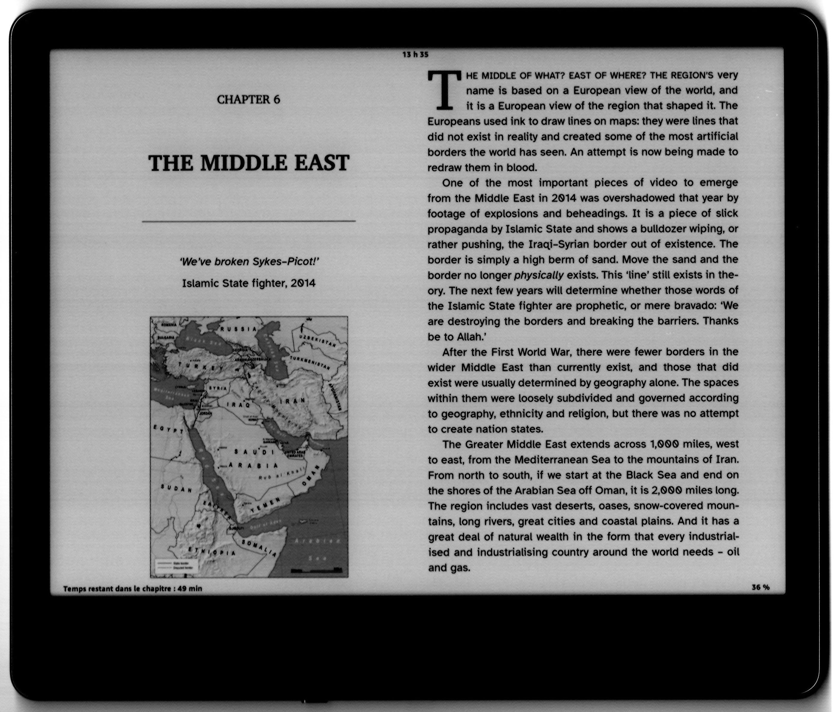 I use the standard Kindle interface on my Scribe, with the narrowest margins and line spacing available. I prefer justified text and on the bottom left I like to see the amount of time left in the chapter. For fonts, I tend to prefer sans serif typefaces; this one is Atkinson Hyperlegible, size 4. Last edited by BionicGecko; 06-19-2023 at 09:13 AM. Reason: Added more images |