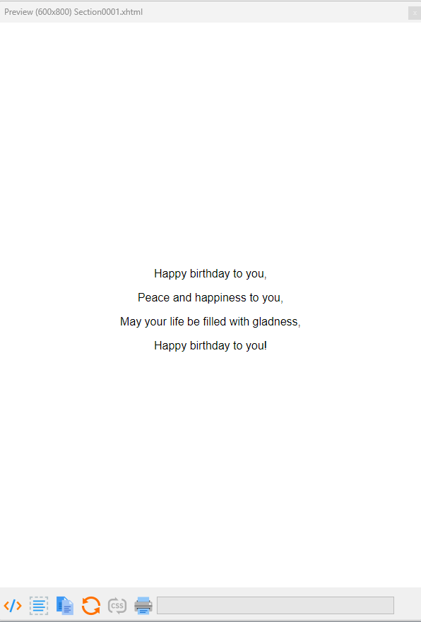 I have saved this as a clip in Sigil, so all I need to do is highlight the lines I want vertically centered and click on the clip. It works great for things like the title page, Dedication, Acknowledgment, etc.