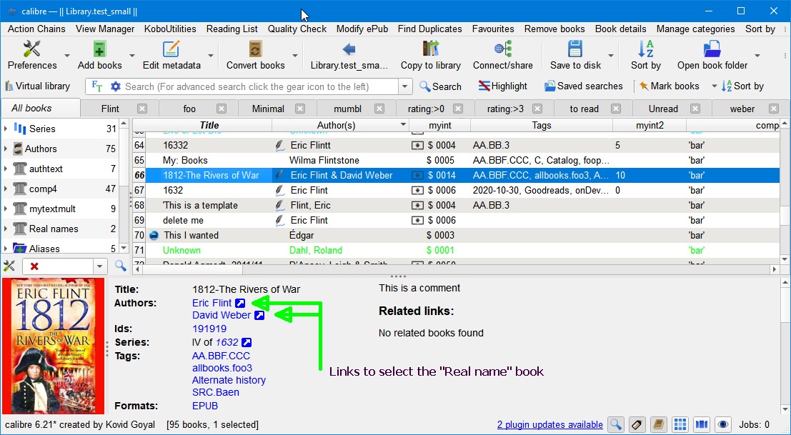 I link the author's different pen names in my Books library to a common record in the Authors library (usually their real name) - e.g. J.K. Rowling and Peter Galbraith to Joanne Rowling. And now that I've replaced the 'show-book' links I had in the Author Link field with 'book-details' links I only switch to the Authors library if I need to add an author, add info for an author (e.g. a link to an op-ed column), otherwise the Author book-details popup (including a search to concatenated pen-names) has all I need. BR |