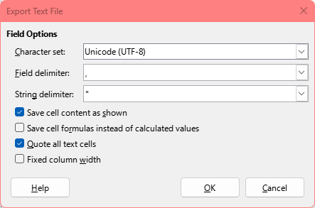 The double-quotes are for the CSV cells, not the data, as I stated. The double-quotes are inserted by Calc/Excel during the save-as file save option which I referenced. The ToolTips are about what you "see" in Calc/Excel. Open a CSV file in a Text Viewer to see what the CSV file really looks like without being manipulated by Calc/Excel. From the .../calibre/plugins/job spy/resources/ example CSV file, as viewed by NotePad. Note the Identifier column. Example cell: ,"'zmyid':'0123456789'", Calc automatically added the double-quotes per the Save-As > Edit Filter options as shown in the attached image. I added the single quotes in Calc, as shown in the ToolTips. Code: