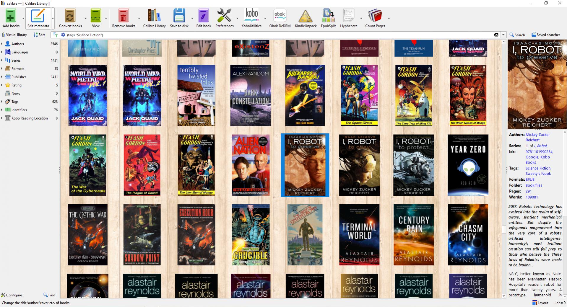 Due to collecting the PD titles, the virtual bookcase in calibre has about twice as many titles.