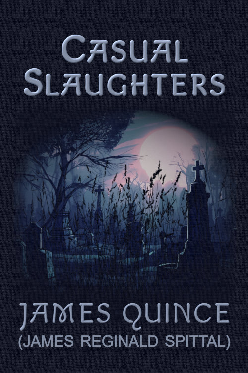 The story opens with the members of the Parochial Church Council meeting to discuss the sorry condition of the churchyard, “a wilderness of nettles varied by cheap marble monuments.” Upon beginning to rehabilitate the graveyard, a murdered body is found — and then a second! What is going on? ————— “Not often is a murder mystery a comedy, too, but that is what James Quince makes of “Casual Slaughters”. The murder is wicked enough, but the humor lies in a Devon church council’s self-assumed duty to investigate it after Scotland Yard has retired satisfied with a coroner’s open verdict. The villagers are pawkily drawn, their sleuthing is unsubtle but effective, and their ultimate finding is quite Solomonic. An unusual and intriguing yarn.” (— 1935 contemporary newspaper review) ================ James Quince was the pseudonym of James Reginald Spittal (1876-1951), a British clergyman, who was at one time the vicar at Holy Trinity church in Lambeth. He wrote three detective novels: The Tin Tree (1930); Notice To Quit (1932); Casual Slaughters (1935). ================ First published in 1935. this book is in the public domain where copyright is “Life+70” or less. . This work is assumed to be in the Life+70 public domain OR the copyright holder has given specific permission for distribution. Copyright laws differ throughout the world, and it may still be under copyright in some countries. Before downloading, please check your country's copyright laws. If the book is under copyright in your country, do not download or redistribute this work.