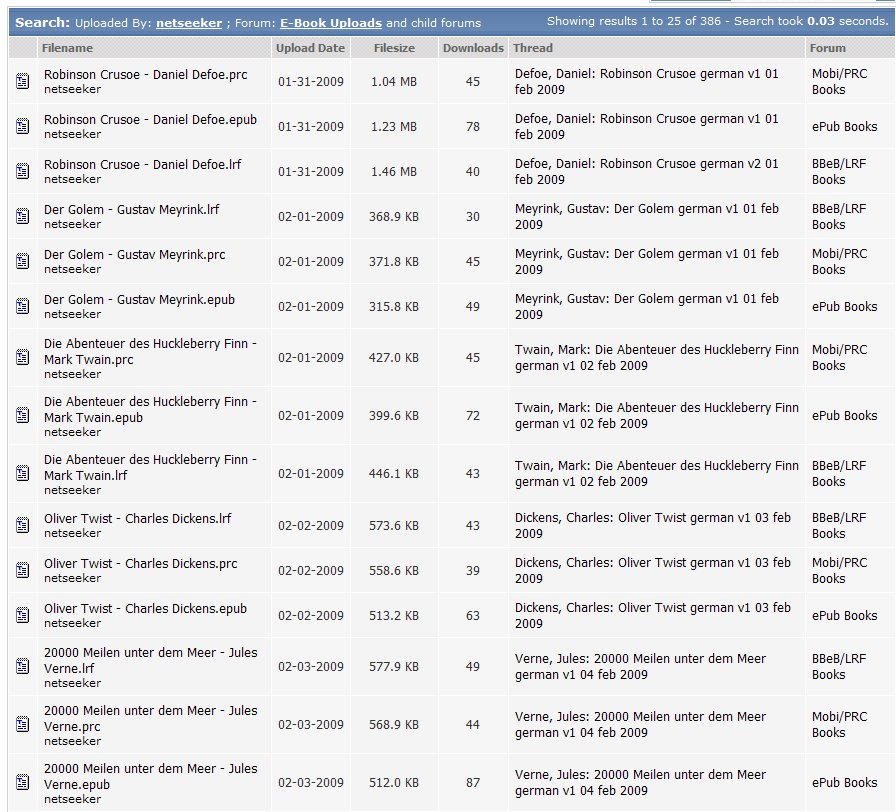 ![]() Well, ever wonder what these Top Uploaders uploaded in the early years of their ebook creation "careers"? Well wonder no longer as I present to you, the Top Uploaders' Early Ebook Uploads (Rank 01 to 18) in glorious picture form (and list form): Code: