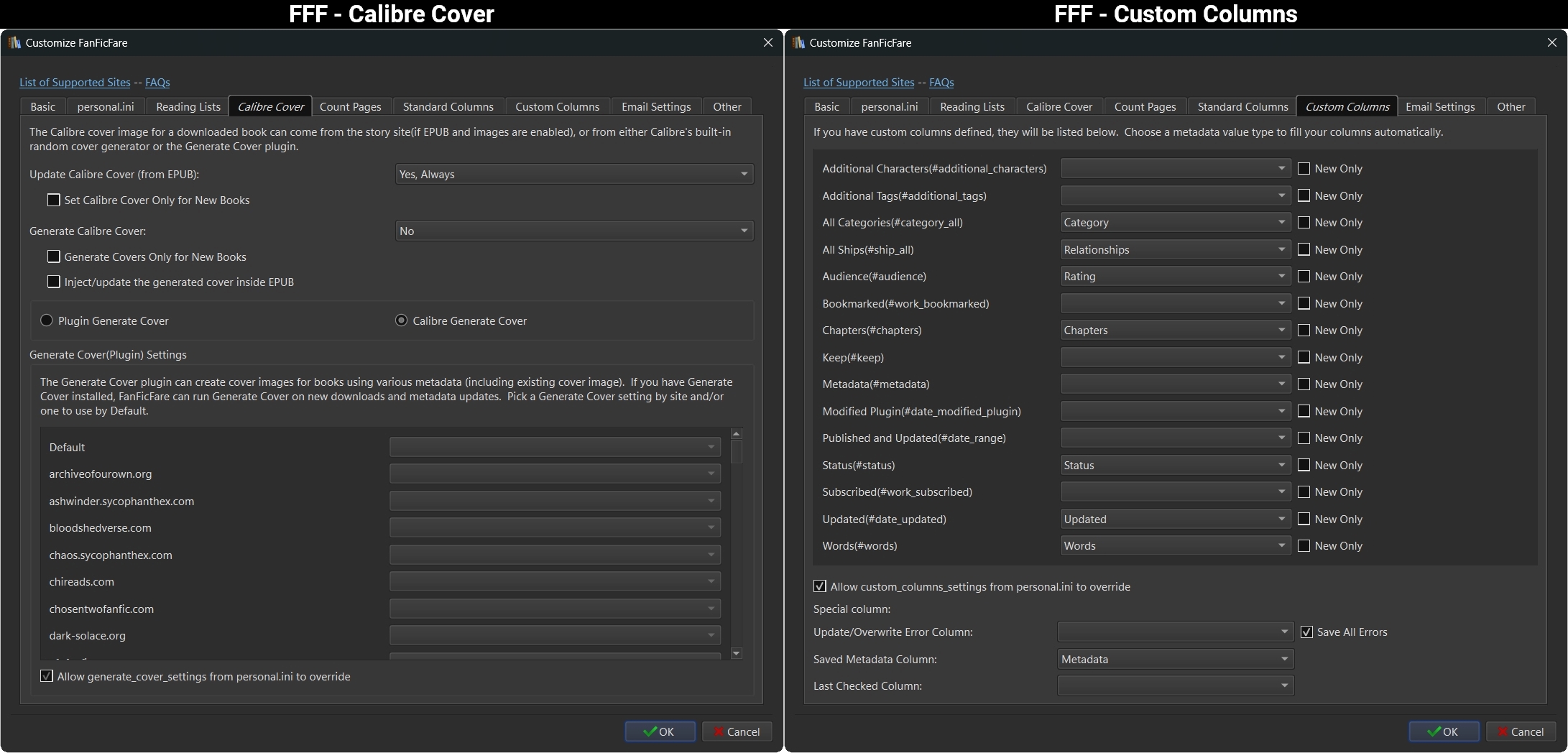 Sharing my current personal.ini (some lines removed since they were too specific to the fandoms I download from) and how the epub looks with my setup. I'm not sure how these settings will handle anthologies. I only download from Ao3 so I can't help with other sites.