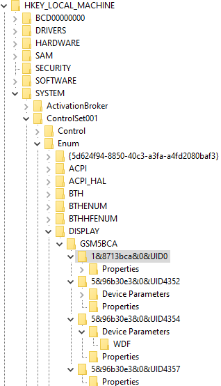 I am a bit worried about the idea of using the FriendlyName key combined with the serial number, because at least in my case, that key didn't exist for me, and as far as I know it's not something that's exposed outside of the registry (maybe an extension like Powertoys would have an option to set this). So if this is the proposed fix, it'll (probably) work for me because I can do that, but your other users may not be as comfortable with the idea of ticking their registry. Maybe, if you're able to access other keys, the "Driver" key may be an option, as that inherently has the unique number after the slash: Code: