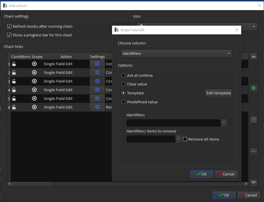 (Yes I see the Label in the MDE. Not sure when it changed. The balloon help still says identifiers.) Calibre has an internal {id} (used in many places via the CLI), and using Id could lead to confusion) FWIW ID is the number in (##) that is the title folder, if you peeked under the skirts. You can edit the value, list in identifiers. You could delete a whole family using the Tag Browser. eg barnsnoble 7 Simply right click on that elete barnsnoble:YesYou can add any identifier you want. I added PG:<pg#> Identifiers have 2 parts Familyname : value |