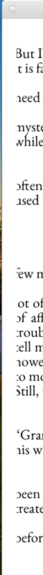Attachment 203744In at least one of my books (I've seen it before, in other books, and ignored it, but right now can't find any other book where it is happening) the farther I read into the book the farther the first letter of every line is sliding off the left margin, by which I mean progressively more and more of the left side of each first letter is cut off, as if the text were being pushed off the page. see attached image.