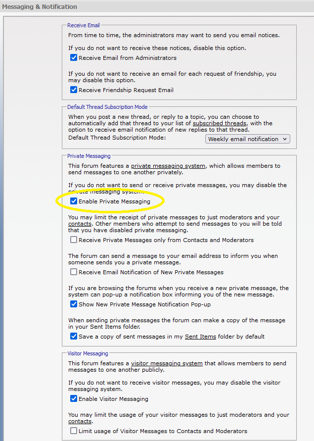 Sorry but I still don't see the PM option when I click on your name. Could you check in the control panel => edit options to make sure that you see the PM section and that enable PMs is checked. See image for more info.