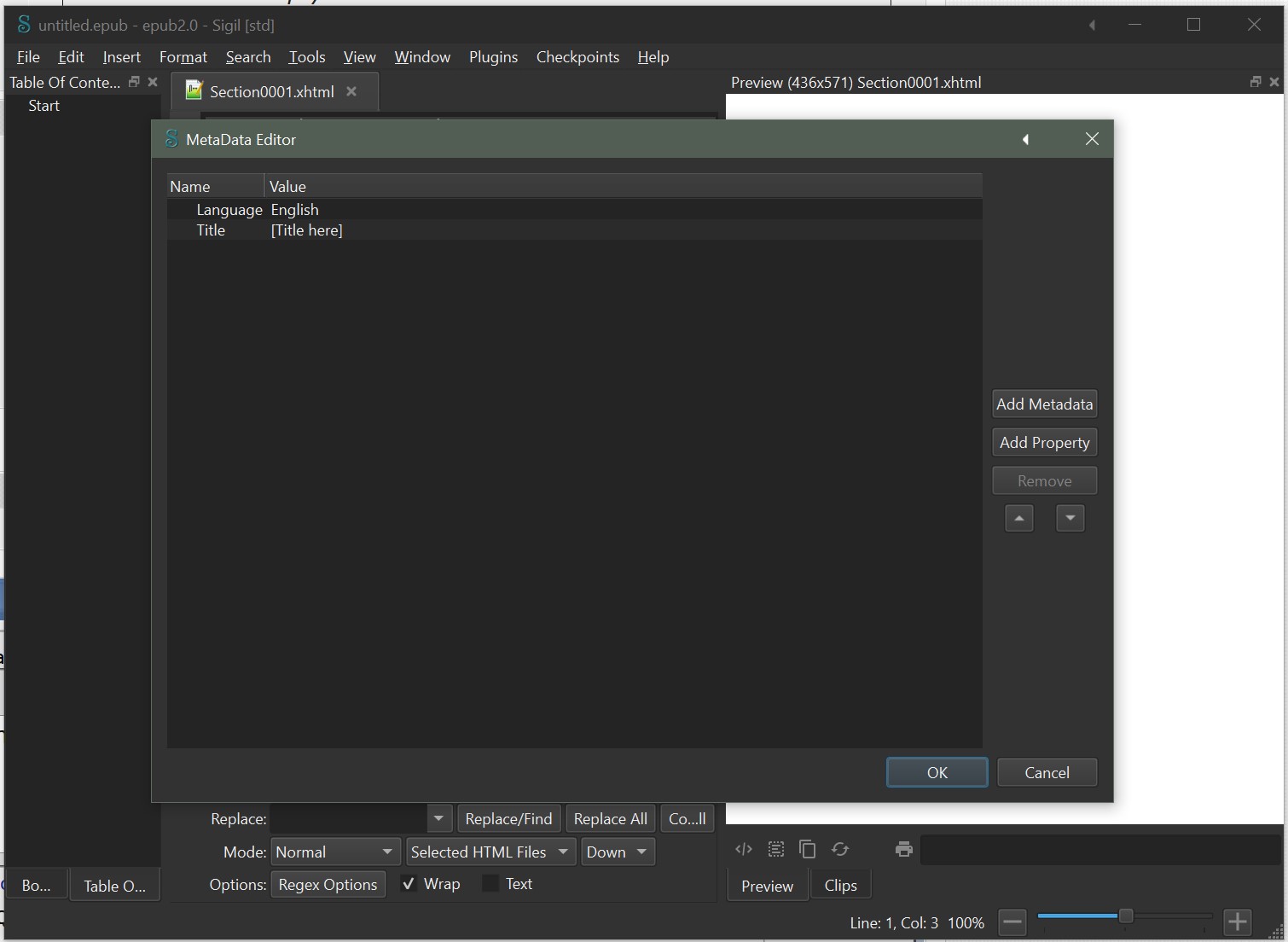 I guess you might call them Elements from a coding standpoint but Property is used throughout the MetaData Editor itself (e.g. the "Remove Property" button, "Add Metadata Property" dialog title, etc) so that's what I used. The point is that the list should be entirely blank. Expected behaviour: If allowed, the Metadata Editor should close and apply your changes to the file. OR if the file cannot have no metadata, it should be handled with an error message or some other failsafe method. Observed bahaviour: Sigil crashes to desktop. I'm on Windows 10, and as I mentioned, I'm using the monitor-debugging build you had sent me a while back. |