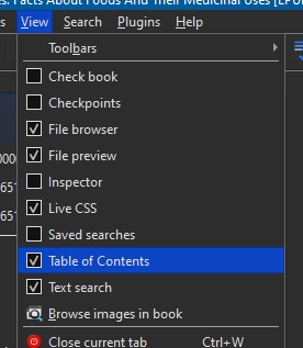 By contents pane I mean the Table of Contents that is displayed in its own pane on the left of the text window, from an open ebook. The Table of Contents is displayed by mouse right-click and selecting "Table of Contents". I'm wondering if the mouse can be avoided and a keyboard command used instead, which would be a lot easier and quicker, allowing one to summon and dismiss the Table of Contents pane in a toggle-like manner.