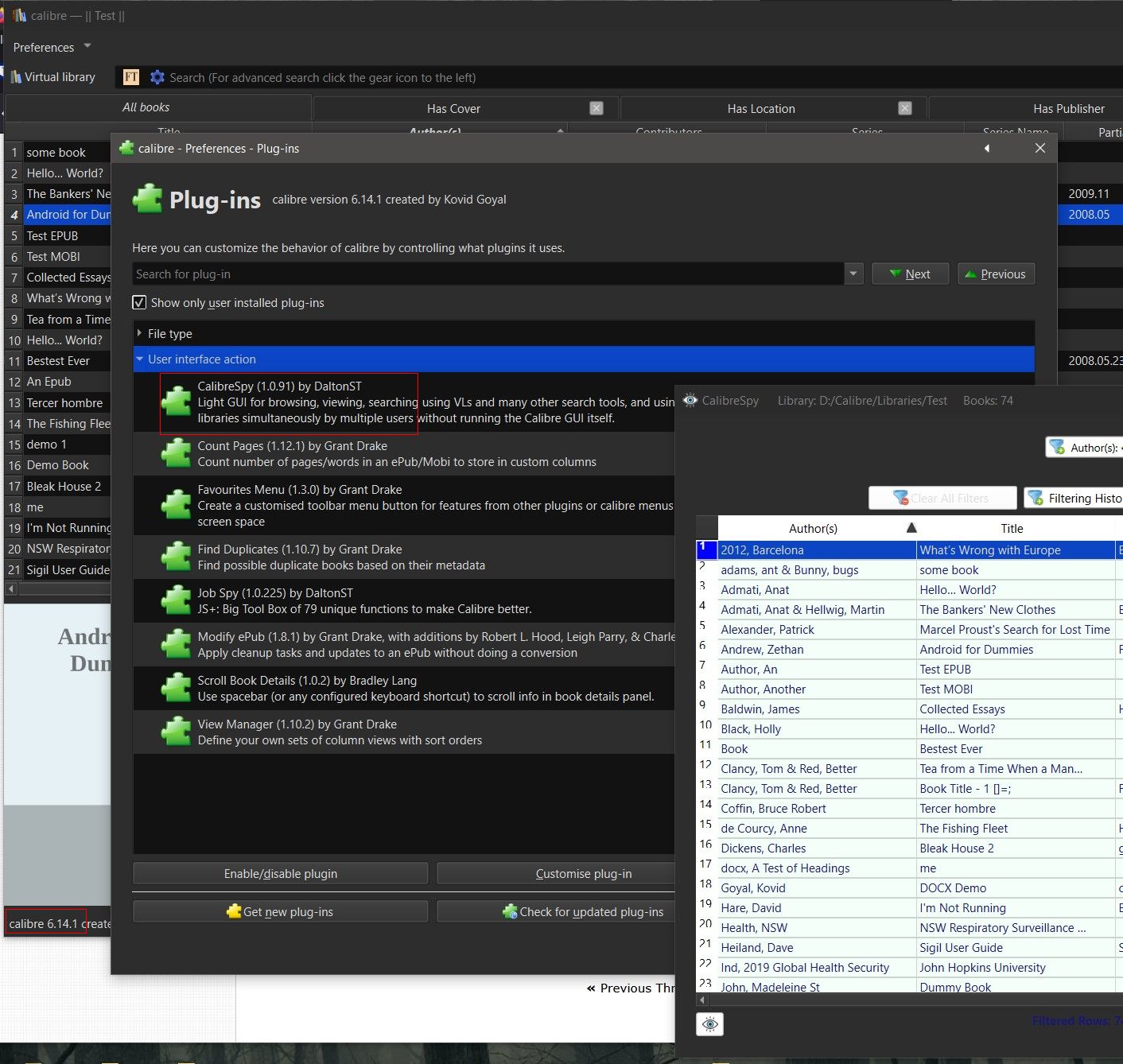 @Sirtel - CalibreSpy stopped working for me a while ago i.e. pre version 7… can't recall details, might have been customisation.