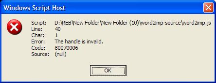 In that part of the form the script takes the output from the word2imp.js script so it is an error raised by windows scripting host.