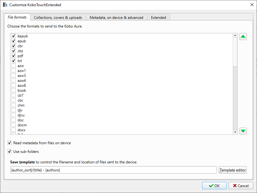 my setup is like this:readarr -> calibre -> database <- calibre-web (kobo sync) -> kobo I seek help from anyone using kobotouchectended and calibre-web! How is the conversion to kepub using KoboTouchExtended handled when using Kobo Sync? is it configured at Calibre or Calibre-web? who is the one doing the conversion? |