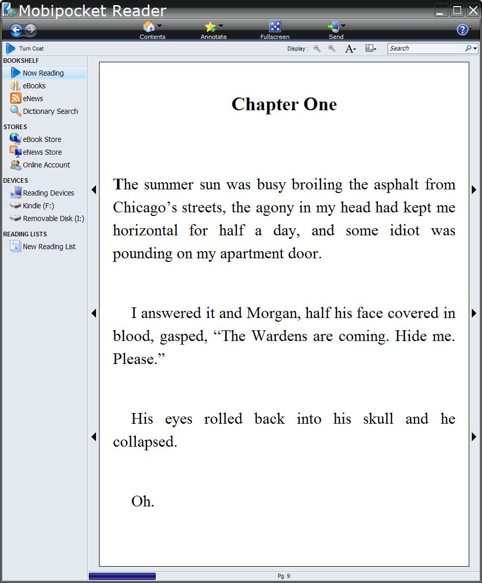 I'll be honest and say I'm not sure where that MS Reader copy came from. What I wanted to do was take a quick look at a copy of Turn Coat to see how bad it really is so I turned to the Darknet and found it. But, if I do like the series enough and get that far in reading it, I will purchase a copy legally.