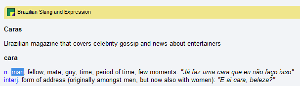 The primary meaning of the word "cara", however, is "face" as in "facebook". There's also a celebrities/gossip magazine named Caras.