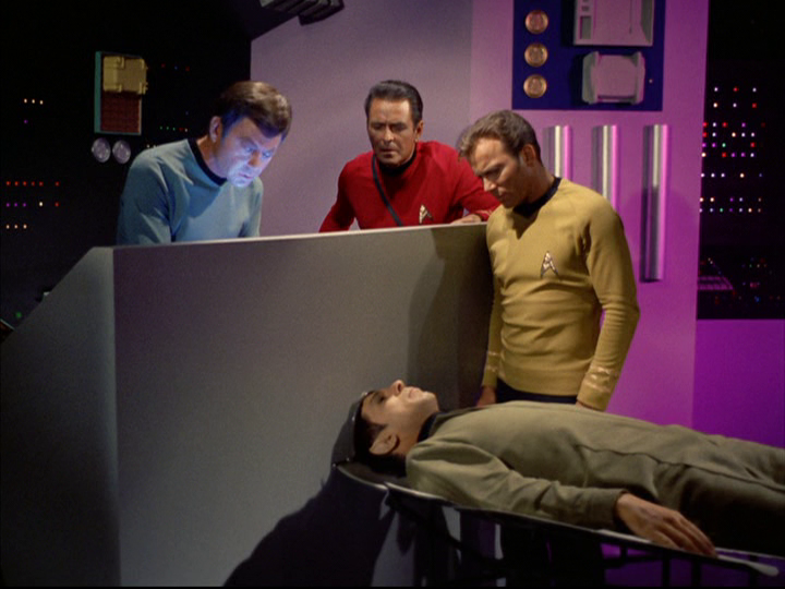 This one's a definite stinker. It also gave me very strange dreams when I watched it back in November. It starts off well. The Enterprise is chasing after a spaceship, then a mysterious woman suddenly pops onto the bridge and does something with her wrist remote thingy. BOING! Everyone passes out. Attachment 205990 Anyways, everyone wakes up on the bridge. Spock is missing, and Dr. McCoy is insisting that Kirk get down to sickbay, RIGHT NOW, because, well: I love how DeForest Kelley delivers such ridiculous dialogue like "his brain is gone!" with such conviction. Anyways, a lengthy segment of them tracking the ion trail of the mysterious spaceship, then deciding to beam down to "planet six." Which is later referred to several times as Sigma Draconis Seven. Yeah, that kind of sums up the episode. After a while hanging out on Sigma Draconis 6.7 and getting into fights with cavemen, McCoy beams down with the brainless Spock. They leave Mr. Chekov and the two redshirts behind on the surface. They decide they might as well get comfortable. Later on, we get such amazing dialogue as: Kirk: What is this place? Woman: This place is... here. And this: At one point, they manage to contact Spock's brain on the communicator. Who promptly admits that "there is a definite pleasurable experience connected with the hearing of [Captain Kirk's] voice." Oh, okay then. At another point, the women leave, leaving the cavemen guarding the prisoners. They also conveniently leave all their equipment in the room. Kirk: This fellow is keeping us from our property. Scotty: Isn't there a way to correct that situation? Kirk: I certainly think that science might provide an answer. McCoy: It does, Captain. (Okay, this part genuinely made me laugh.) So eventually, the plot leads up to sticking Dr. McCoy into a futuristic hairdryer in order to give him the knowledge to re-implant Spock's brain. "Of course. Of course. A child could do it. A child could do it!" Of course, he starts forgetting halfway through, so they re-connect Spock's speech center so he can direct his own brain surgery. Makes perfect sense. His hair is fully intact afterwards. Dr. McCoy regrets re-connecting his mouth. ... honestly, it's kind of a fun episode if you don't take it too seriously.